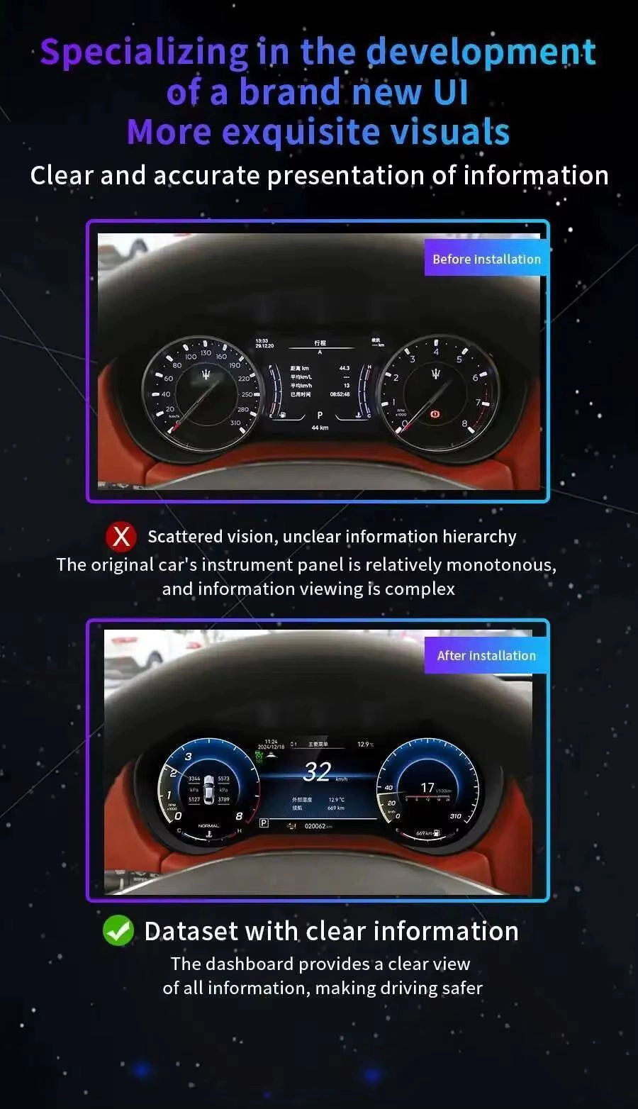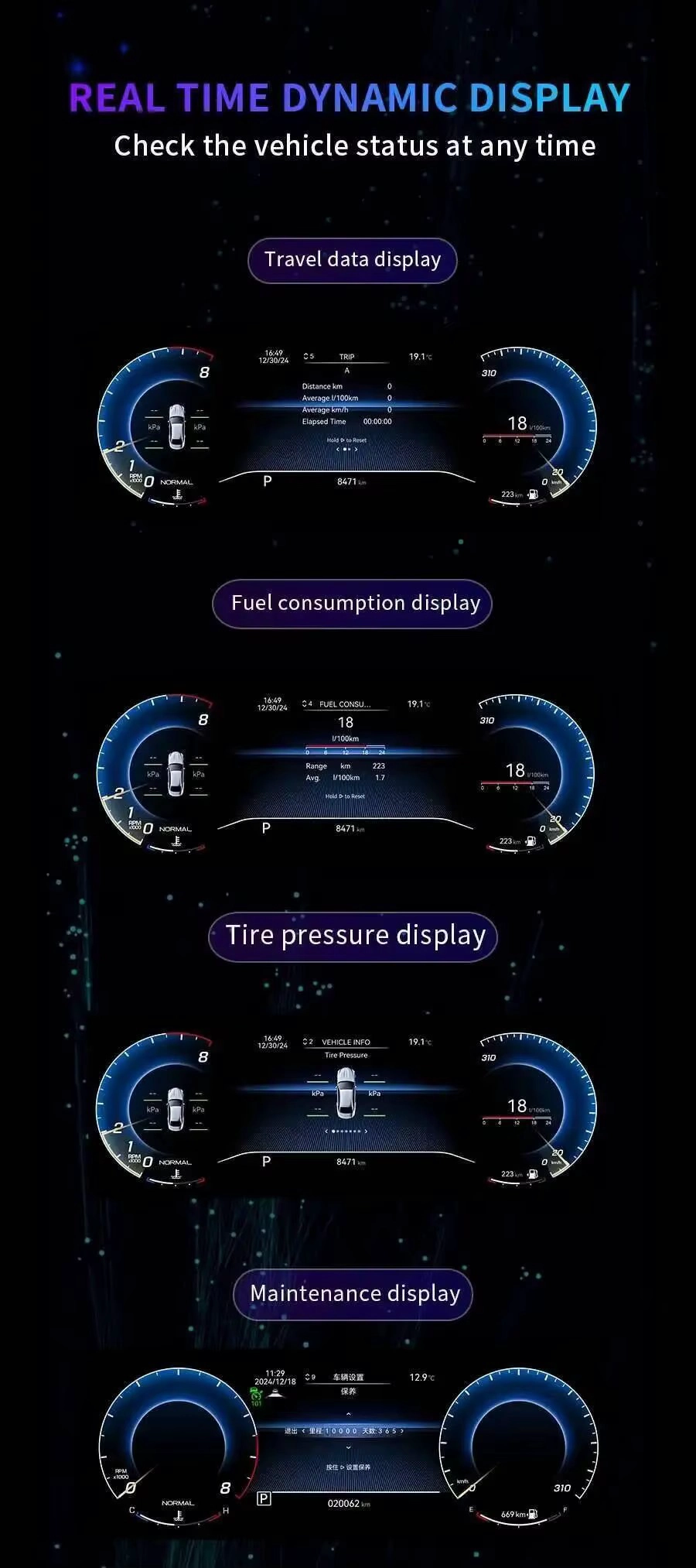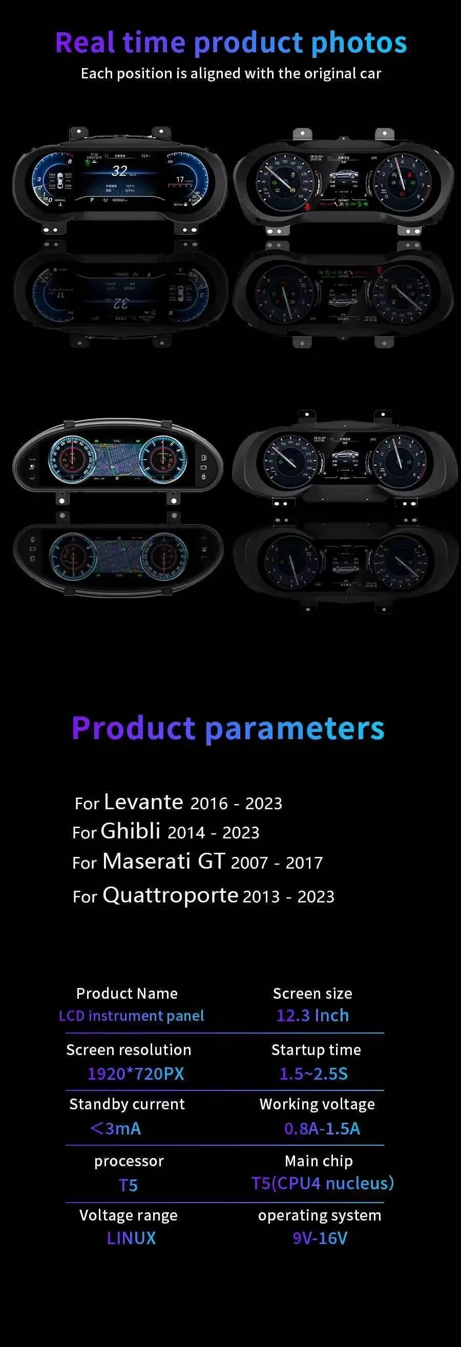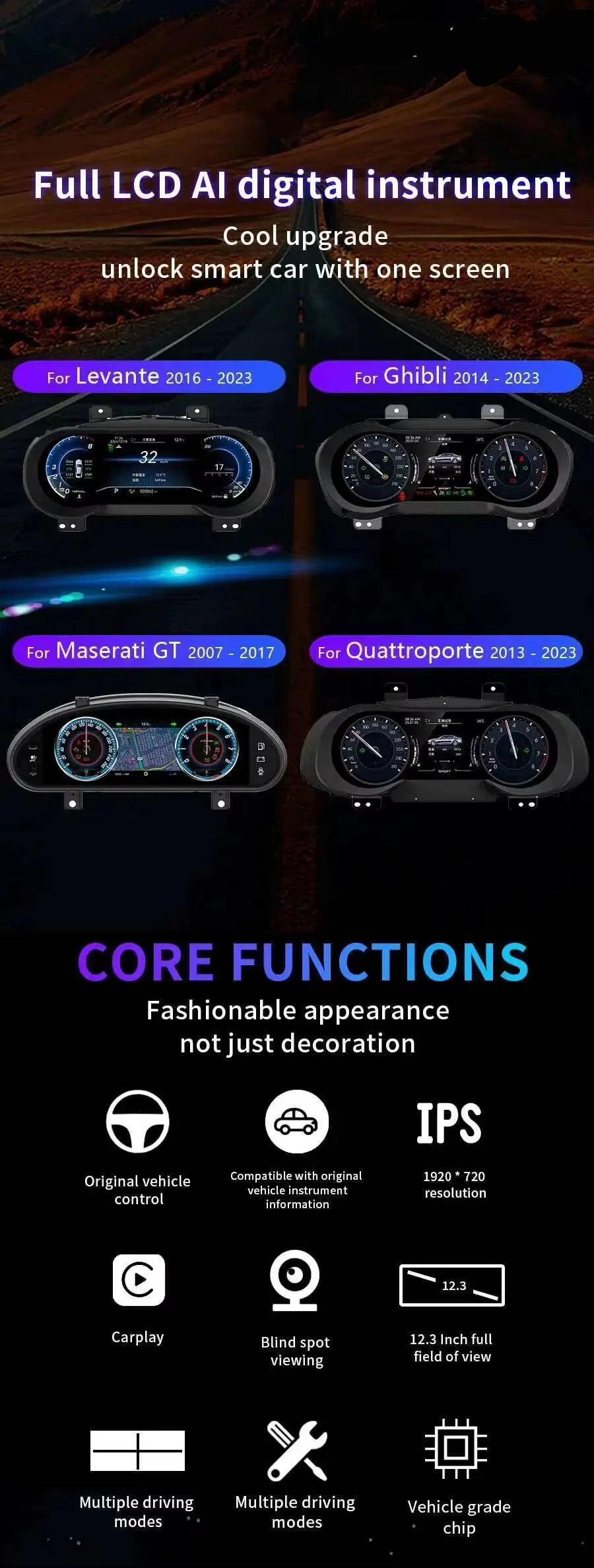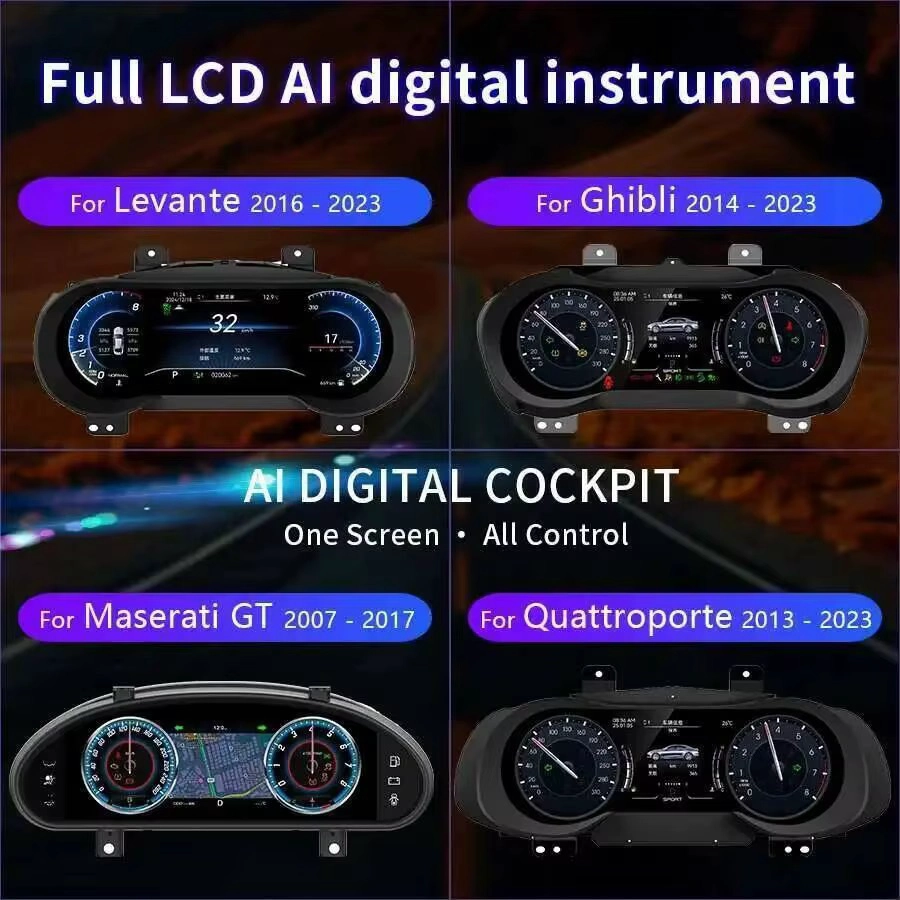 12.3 英寸汽车数字仪表板适用于玛莎拉蒂 Quattroporte 2013-2023 年 LCD 仪表板驾驶舱多个 UI 车速表