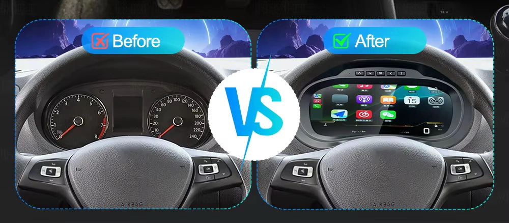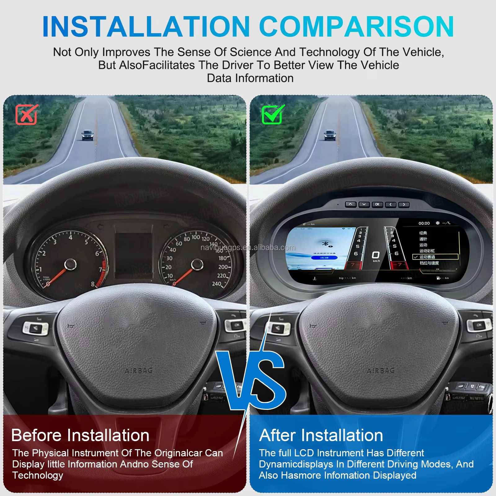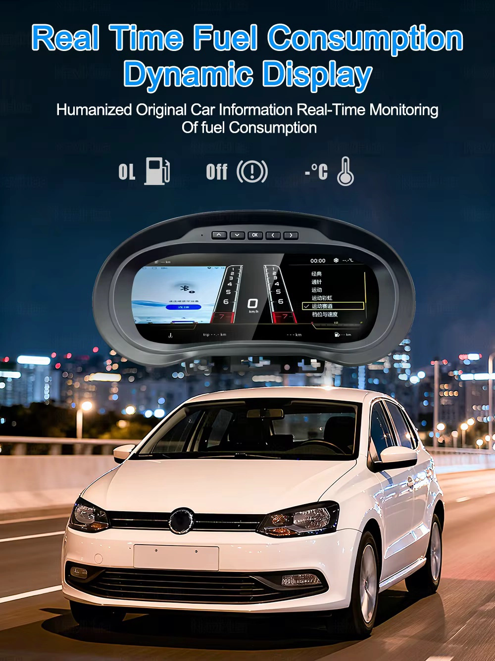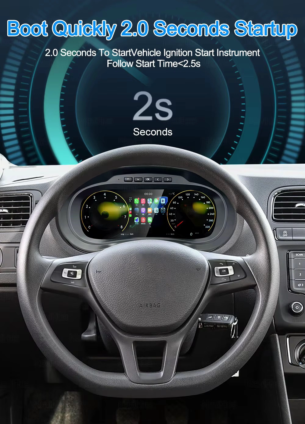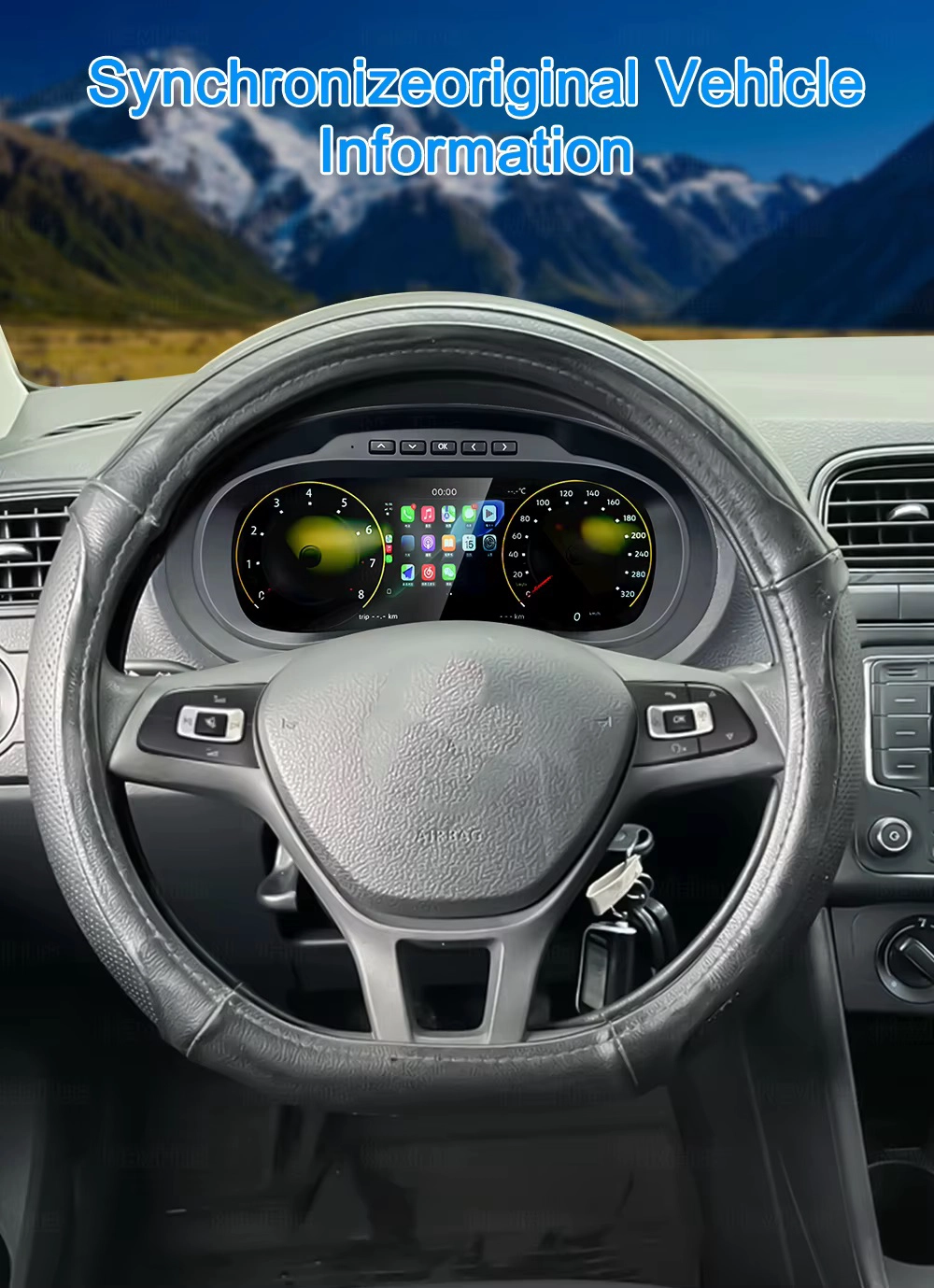 适用于大众 Polo 2012-2018 汽车车速表仪表板 Linux 无线 Carplay HDMI 虚拟驾驶舱 LCD 仪表板汽车显示器