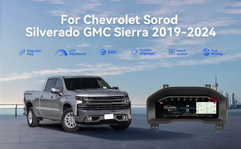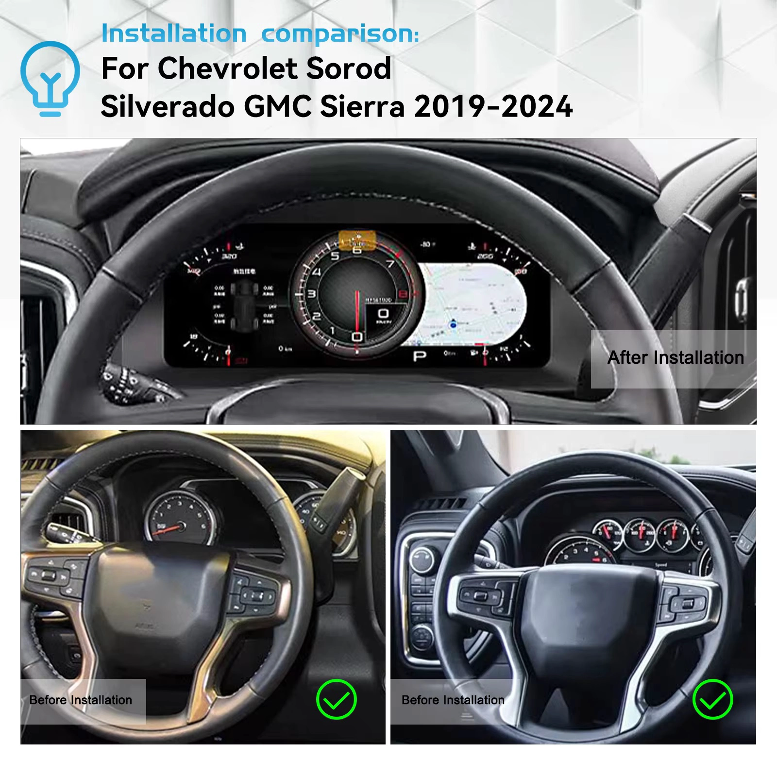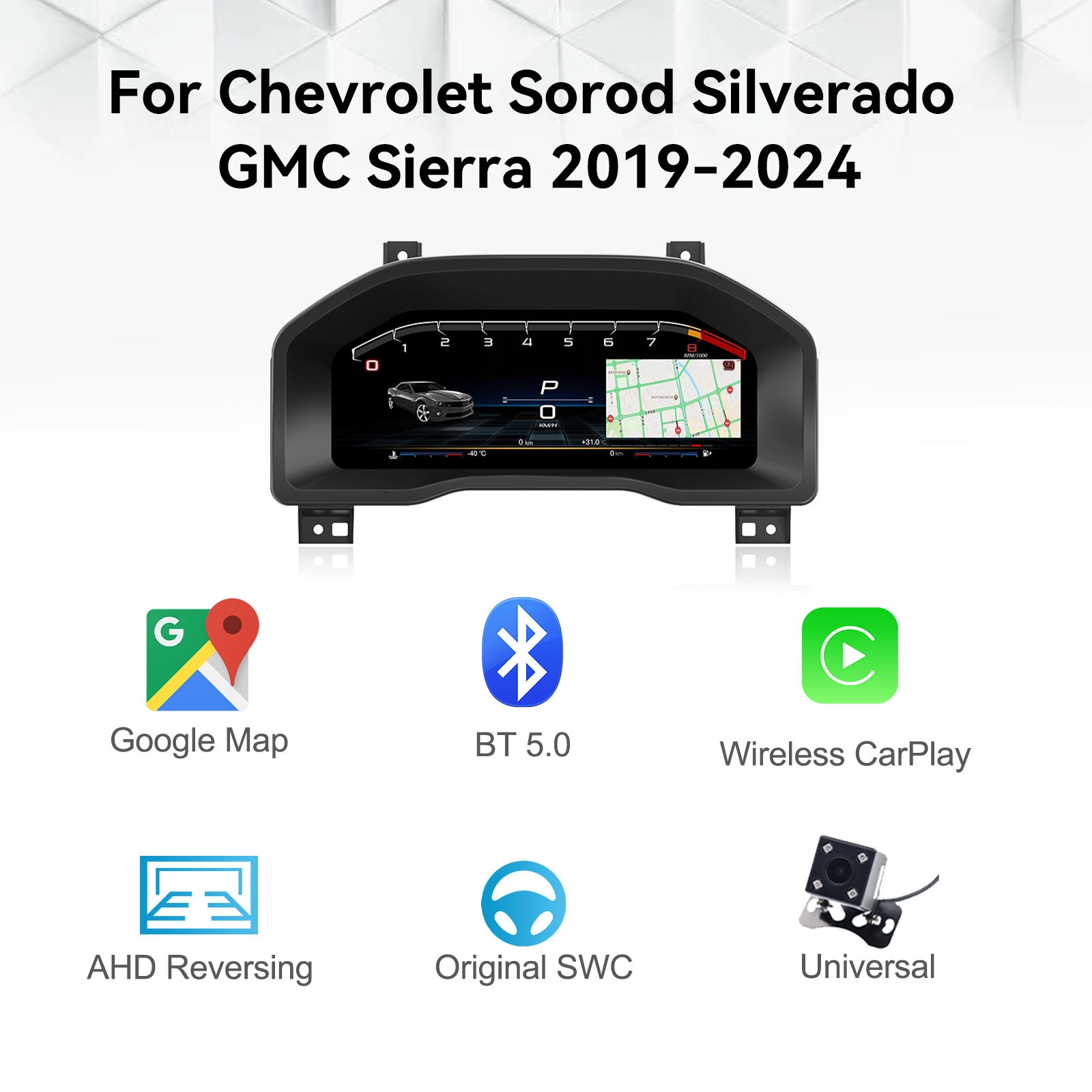 12,3'' LCD-Armaturenbrett für Chevrolet Silverado GMC 2019–2026, LCD-Instrumentencluster, LCD-Kilometerzähler, digitales Cluster mit Carplay